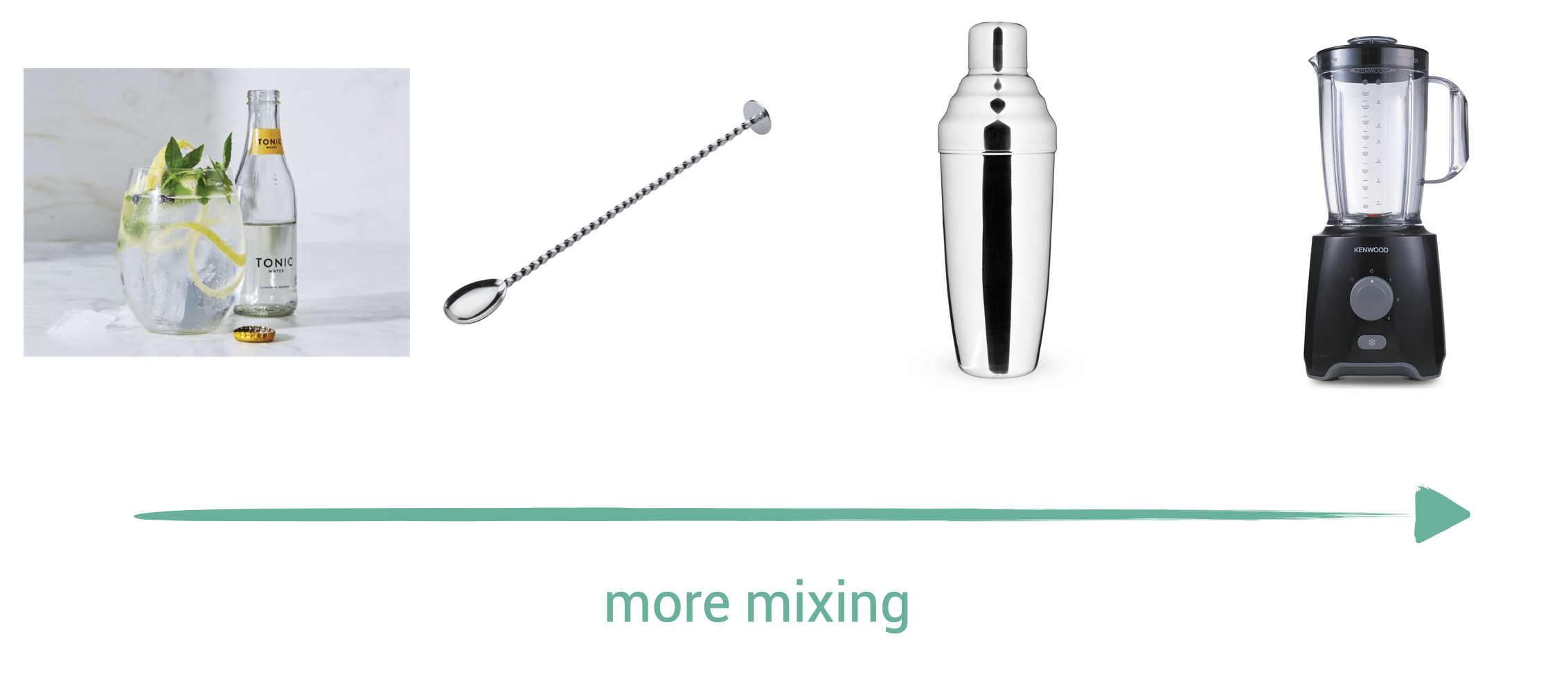 The fundamental law has significant consequences on how cocktail recipes are designed. Consider the different ways of mixing a cocktail.